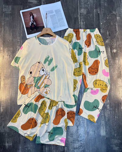 ست زنانه {شلوار+شلوارک+تیشرت} سه تیکه ای لاکرا