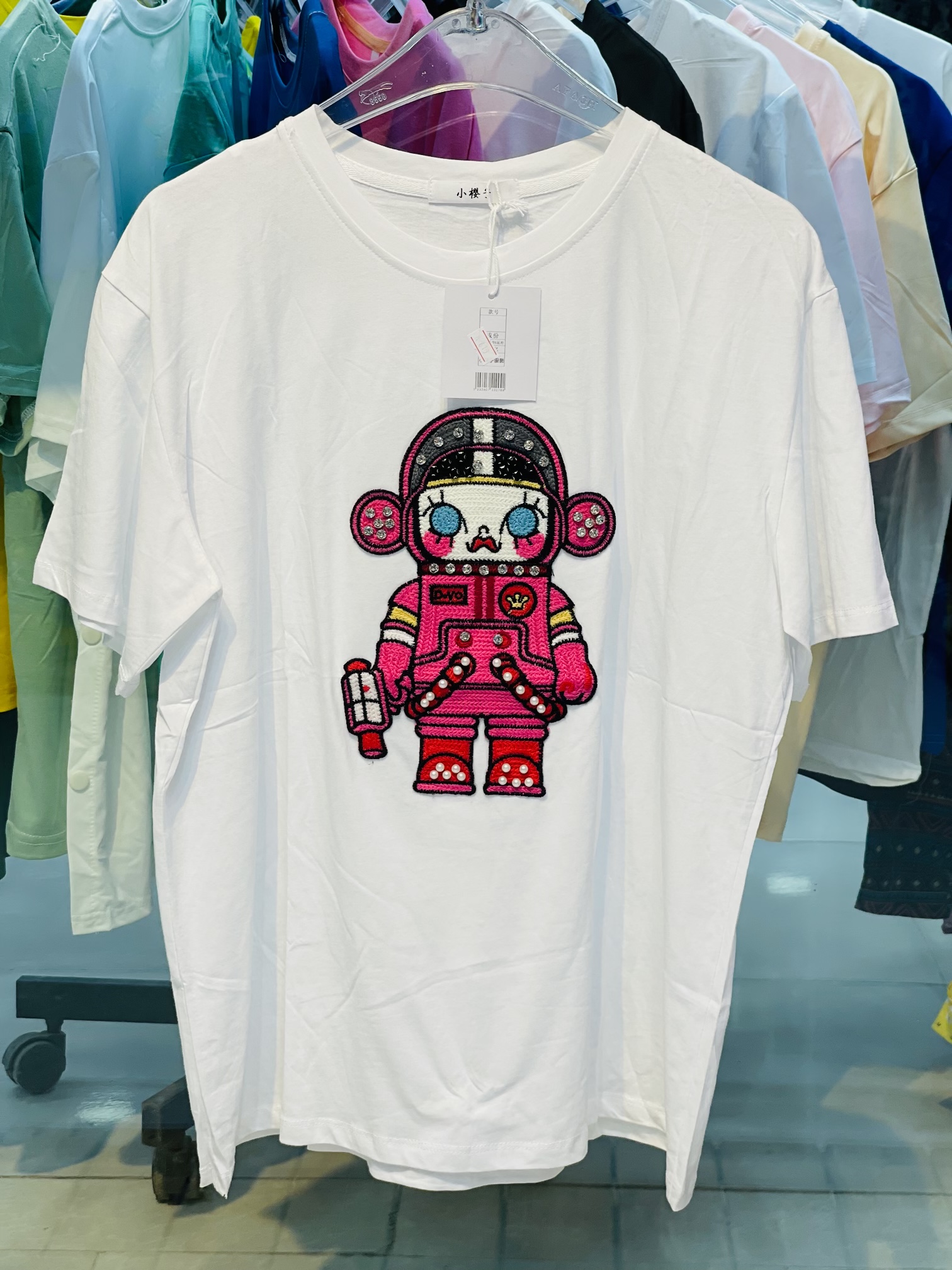 تیشرت زنانه عروسک برجسته نخ پنبه سایز بزرگ